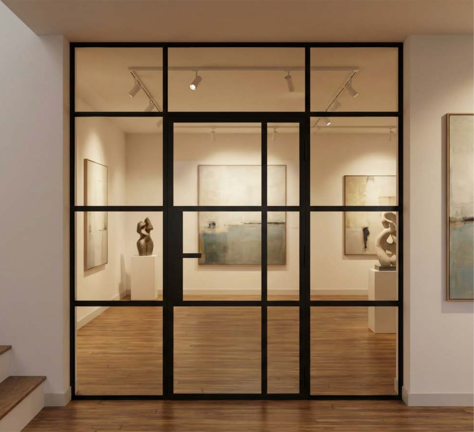 1‑flügelige Lofttür für moderne Innenräume. Maßgefertigt aus Aluminium und ca. 50 kg...