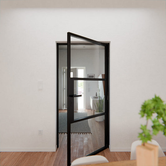 1‑flügelige Lofttür für moderne Innenräume. Maßgefertigt aus Aluminium und ca. 50 kg...